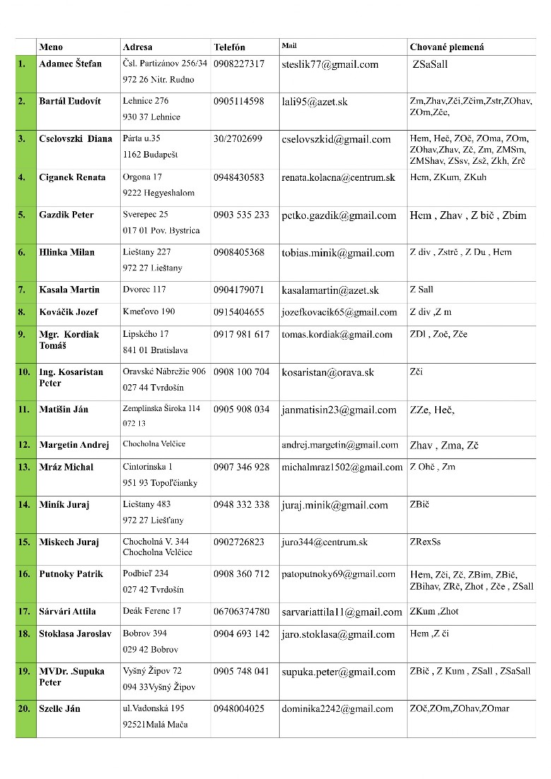 Členovia klubu - ..:KLUB ZK::.. Klub chovateľov zdrobnených králikov